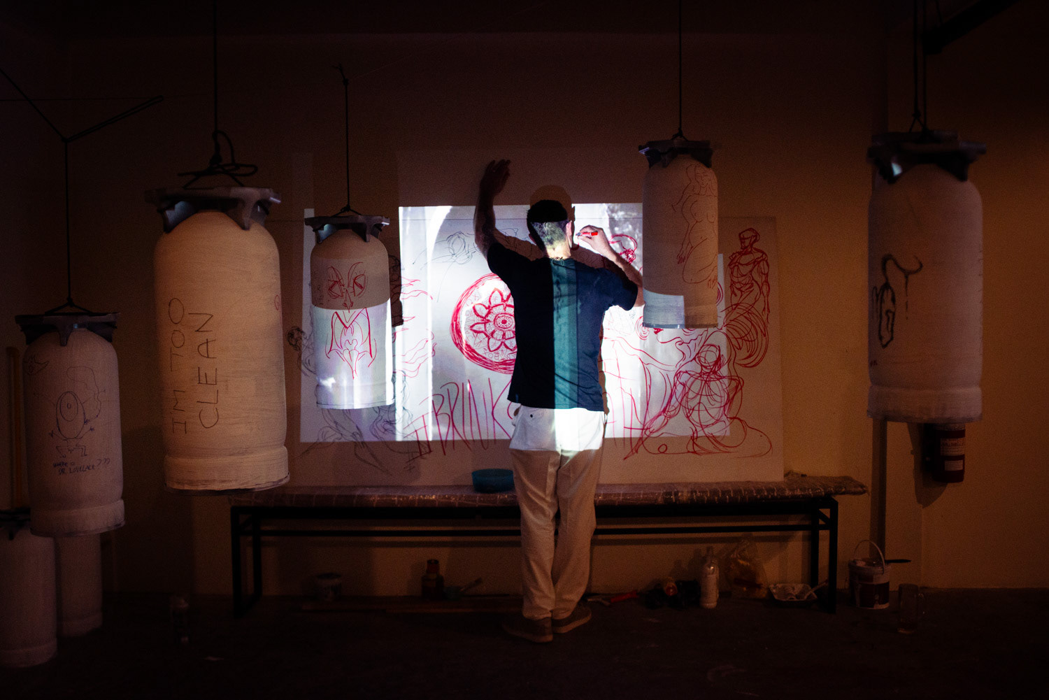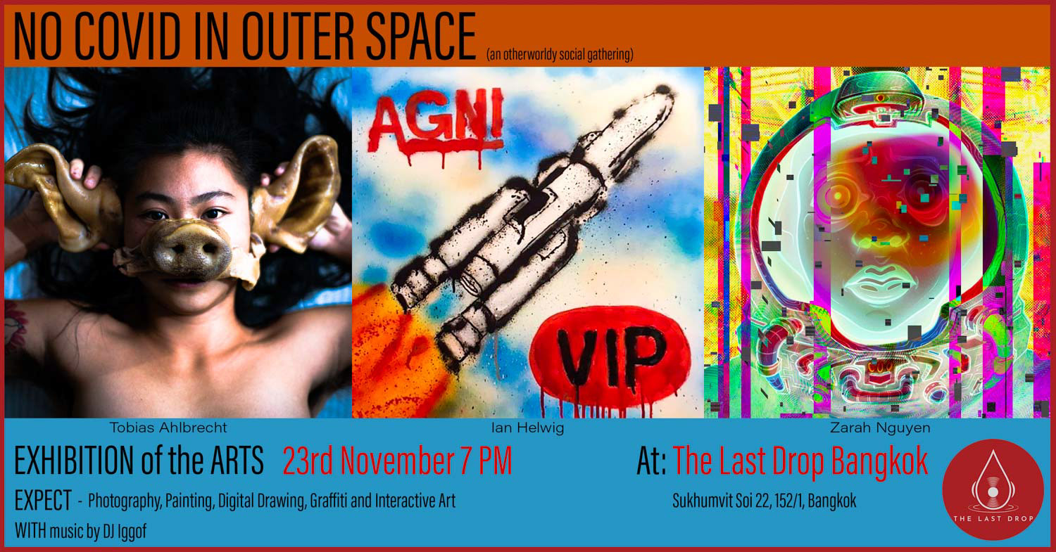 Special thanks to the team of The Last Drop Bangkok for the opportunity to exhibit the 'Nomansland' - series as well as to the many people who helped me make this show possible. Specifically to Alexandre Lorent Guerra and Polo Ruesz for curating and advertising the show. Further thanks go out to the musicians that accompanied the exhibitions: Iggo Frost (DJ), Joe Delaney (and band) as well as Gate Garnglai (DJ). Also, shoutout to the other exhibiting artists and their amazing work: Ian Helwig and Zarah Nguyen. 'Nomansland'-light built by Lud Absolud.